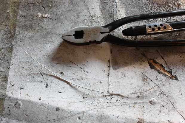 Tuerza el alambre para reforzar alrededor de una pulgada y dejar unas pocas pulgadas de hilo sin torsión.