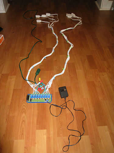 El deseo de hacer la placa de relé reutilizable como algo más que un aparejo de canto calabaza me llevan a idear el diseño en imagen 1. Había hackeado por cables de extensión y había cableado de los relés. Las luces de Navidad lámparas calabaza / cables de lo que puede ser conectado con la extensión. Este diseño funcionó bien, excepto que tenía algunos problemas con él. 1. no era muy portátil. Las cuerdas consigue torcidas y era un poco pesado de todo el alambre. 2. seguridad. Con este diseño, básicamente había que llevar el aparejo con los cordones de extensión. Me preocupaba que esto provocaría también un cable salgan del bloque terminal. Usted realmente no quiere un alambre expuesto con pared de corriente que fluye a través de él en cualquier lugar cerca de usted.