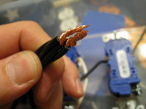 (imagen 4 muestra dos pares de cables trenzados listo tienen una tuerca para cables atornillada)
