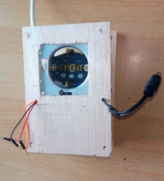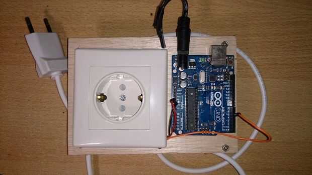 En la parte superior debe abrir un agujero grande que se ajuste a enchufe de pared y dos pequeños agujeros para los cables de arduino, véase imágenes.