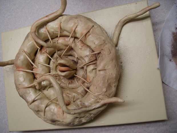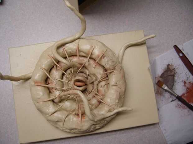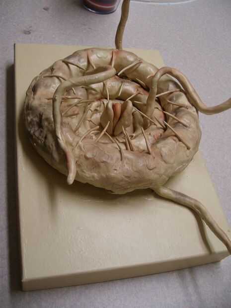 Cepillado en un tono rojo en su lengua y las espinas con un marrón de textura, entonces fue sobre todo con negro y marrón.