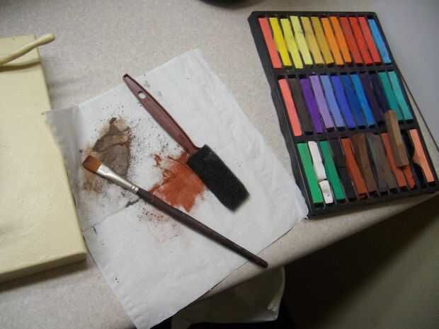 La textura y golpes de sculpey/papel de aluminio, le dan carácter y proporcionan excelente textura para aceptar el polvo de los pasteles que fue cepillado de él.