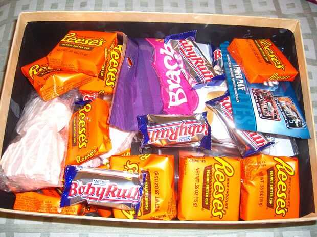 Entonces, llenaba hasta el borde con golosinas como corazón en forma de pasteles, de Reese, bebé Ruth bares y más dulces!