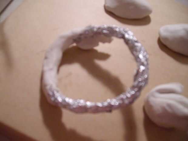 Utilizando el papel de aluminio que estamos agregando bulto, así que no tenemos que utilizar tanto sculpey y así no tenemos que hornear siempre.