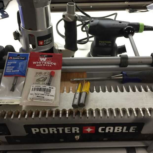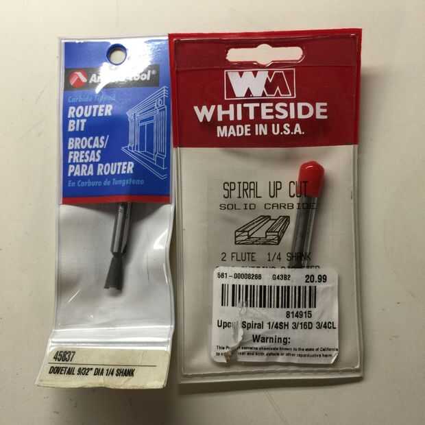• Para pines y slots: Whiteside: 1/4" espiral hasta corte flauta, 2 1/4 caña