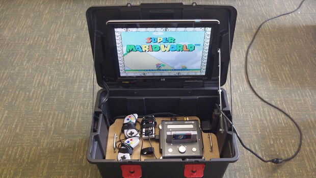 En las instrucciones siguientes, usted aprenderá cómo crear un go-anywhere sistema de juego, que se puede utilizar en cualquier lugar y jugar directamente desde el cuadro de. Sólo enchufar uno, abrirlo y jugar!