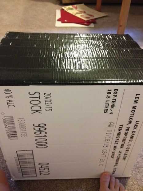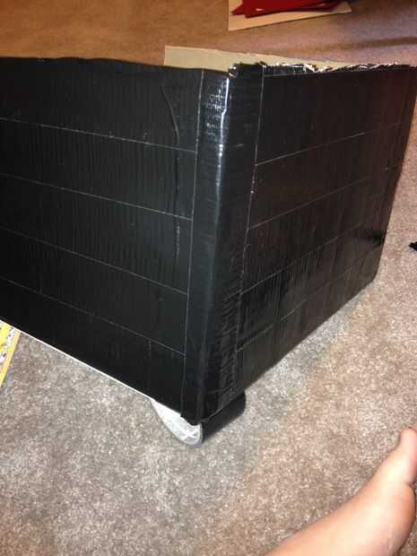 Ahora es el momento para nosotros decorar el exterior de la caja usando cinta adhesiva. CINTA AISLANTE!!!!!! Usé el negro para cubrir todo el exterior de la caja. Asegúrese de que ir en una dirección general.