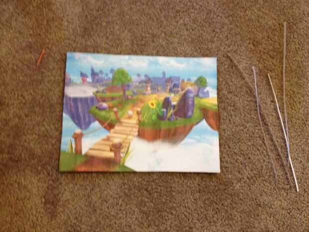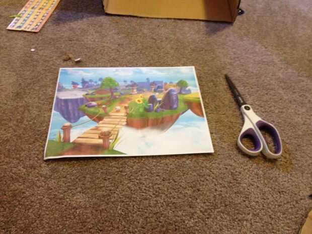 Imprimir un fondo de imágenes de Google. He buscado por "Skylanders fondos" elige una imagen que ninguno de los personajes tiene en él un fondo real . Utilice uno con personajes en el fondo de un lugar más "público". Tuve que recortar un poco los bordes blanco porque Google a la izquierda hacia fuera sobre un medio centímetro de espacio para una frontera. Yo no quería eso.