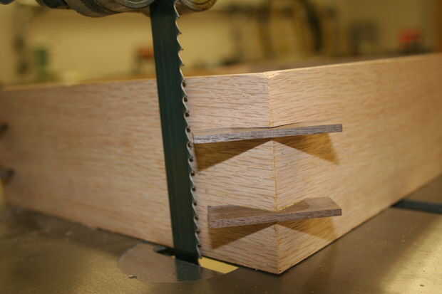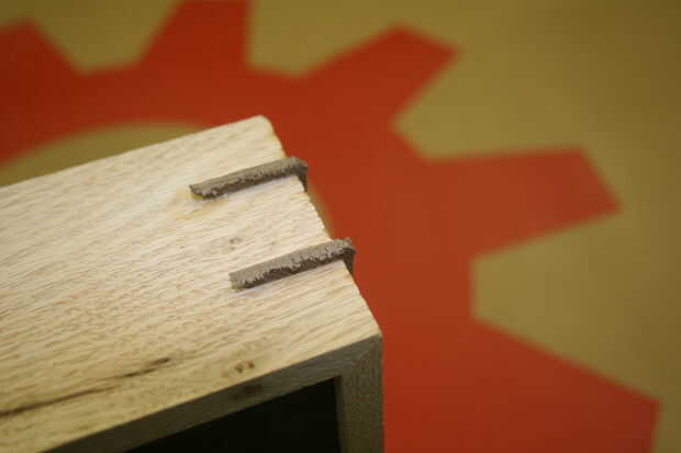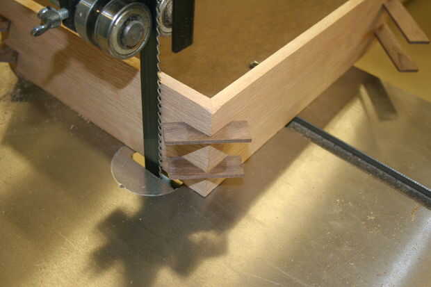 Cuando el pegamento esté seco, cortar la madera adicional en la sierra. Intente cortar la pieza de madera cerca de la caja sin cortar en su caja. El exterior de la caja utilizando el mismo método para el interior de la caja de arena.