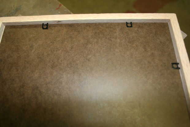 Medida corta el interior de la ranura para la placa de respaldo. Cortar el pedazo de Masonite en el dado. Corté dos pedazos de Masonite, y la 2 º pieza actuará como el vidrio, así cuando se utiliza el controlador de punto que no tiene el vidrio dentro de la caja de la sombra.  Uso de la unidad de punto de añadir en las pestañas que mantienen la Junta y en lugar de vidrio. Sacar las placas y añadir un final a su caja de sombra. Poner el cristal y arte de Masonite y cerrar las pestañas de su caja de sombra.