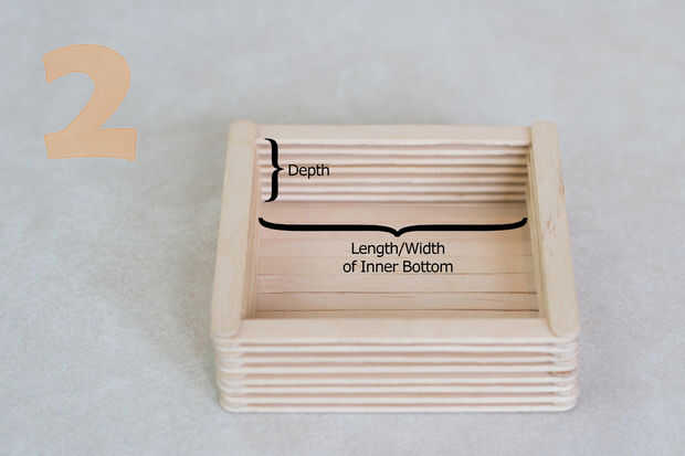 Medir la profundidad y la longitud o anchura de la parte inferior interna de la caja. Puesto que el la caja debe ser aproximadamente cuadrada, sólo necesita medir un lado de la parte inferior interna de la caja.