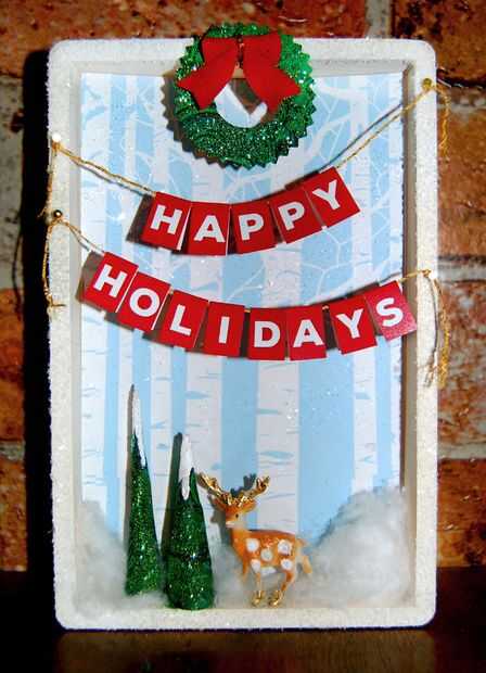 Agregue su algodón en el fondo, pegamento abajo sus árboles y el venado. Lo adornado con un pequeño pan de oro... es después de todo, las vacaciones.