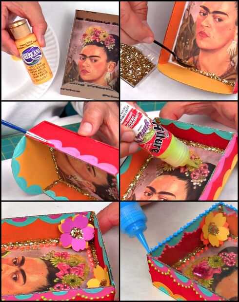 Agrega pegamento blanco y brillo a las esquinas del marco de la
