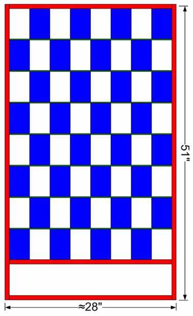 Hay 32 espaciadores (mostrados en azul) se hacen de común x4s Pino 1. (3/4 "x 3 1/2")