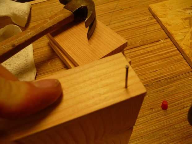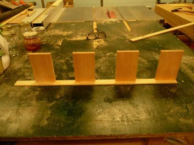 Pegamento y clavo a espaciadores a un listón. Sería lo mismo que el paso antes excepto que los espaciadores ahora son al ras de la izquierda. Uñas en lugar de 5/8 clavitos de acabado.