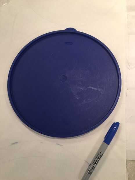 Traza dos círculos-11 pulgadas de diámetro en la cartulina para la parte superior e inferior de la caja del sombrero - (una tapa de plástico grande trabaja para un patrón)