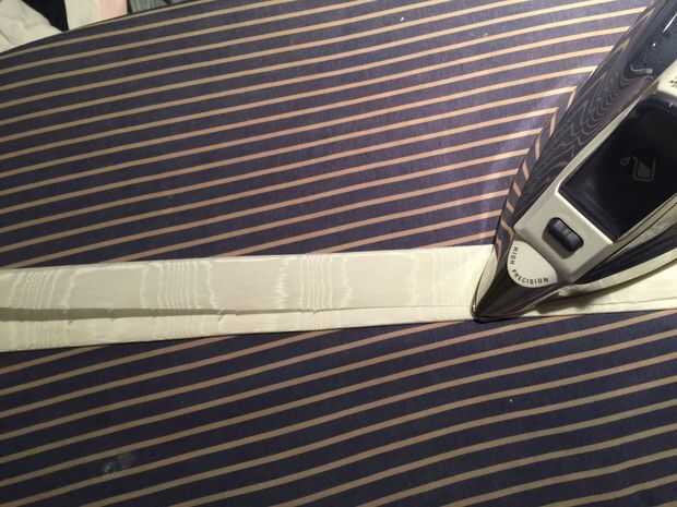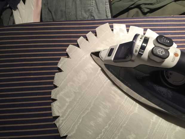Hierro en uno de los círculos de tela de tamaño exacto para la parte inferior de la tapa