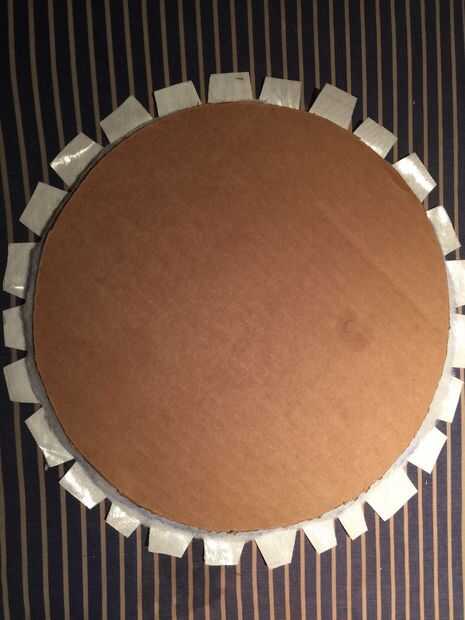 A continuación tendrá que doblar las lengüetas para la parte inferior del círculo de cartón, planchado como vas.