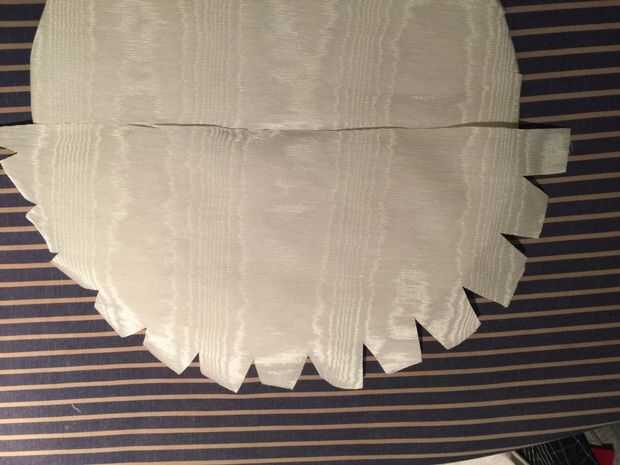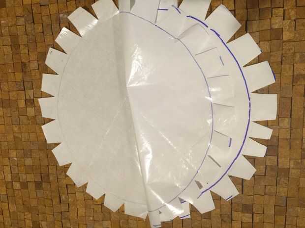 Inicio con corte de tela circular más grande salidas con V cut outs, centro en la parte superior de la cartulina y del hierro