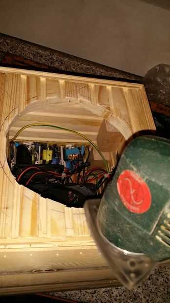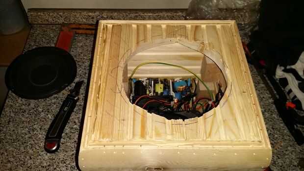 CAT 4 pasos más para cerrar el cuadro de la parte superior uso tornillos de madera de 3mm y pegamento caliente porque u nunca se sabe cuando vas a abrir y para la marca de la parte inferior el orificio para el subwoofer con la Sierra de segura el sub con los tornillos también utilizar pegamento caliente para cubrir los agujeros del papel de lija dan un aspecto agradable el sitio inferior que fije con clavos ya que usted puede poner su mano por el agujero del sub