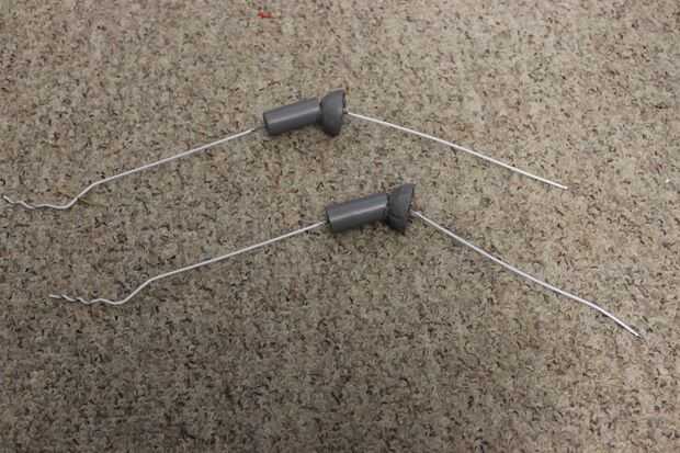 Para la antena aparte tomamos una vieja antena de tv (al estilo de la oreja de conejo) y quitar la punta de uno de los tubos telescópicos. Mi compañero había soldado el LED verde a dos cables que alimentan a través de la antena y conectada a la batería y el interruptor.