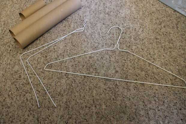 Hemos hecho los brazos fuera de percha de alambre, tubos de cartón y pelotas de espuma de poliestireno cortadas por la mitad. Las manos fueron cortadas de cartón. Todo fue había pegado con pegamento y pintado gris. Como toque final le pegan algunos cables eléctricos entre los codos y las muñecas.