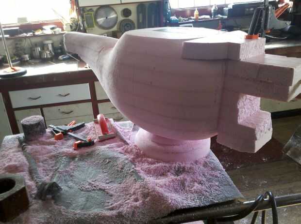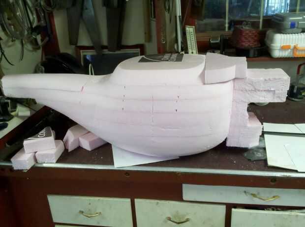 6. después de que su espuma es esculpido, puede usar el yeso negro lija y Lima de madera finos para suavizar su modelo. El papel de lija yeso es importante porque no coagular!