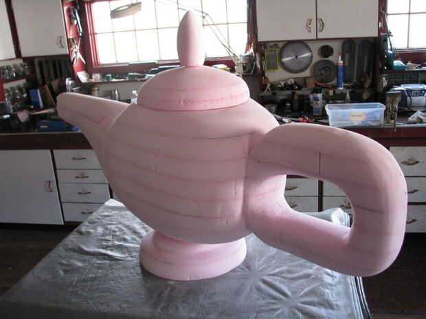 2. una vez que la configuración del bloque lo que te gusta, utilizar spray adhesivo para unir las láminas de espuma de poliestireno. Si usted sabe que usted no escultura donde el pegamento será uso poder agarrar. Toma del poder es mucho más fuerte pero es muy difícil de esculpir porque cuando se seca es duro como roca. Sabía que iba a ahuecar el interior de la lámpara pero no estaba seguro exactamente donde, así que utilicé pegamento de spray y funcionó bien. Rocíe ambas hojas de espuma de poliestireno y luego los ponen juntos. Repita hasta que haya un bloque sólido (o cualquier forma que desee). Debo advertirle que si utiliza demasiado pegamento de aerosol se come la espuma! Tenga cuidado de no dejar gotas o spray demasiado!