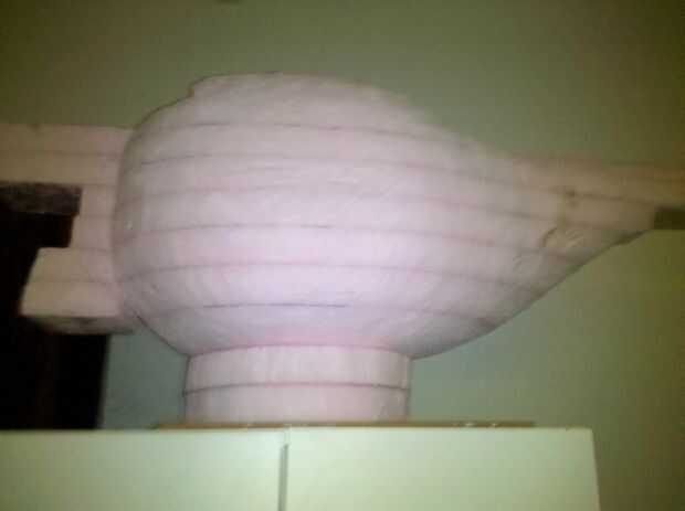 4. ahora para la parte más laboriosa, esculpir. Se puede utilizar una combinación de las sierras de calar, hack hoja de sierra y archivos para esculpir el modelo. Lo que encontré trabajado mejor fue usar el hack vio hoja para cortes largos rectos, las sierras de calar para ya realizar cortes curvos y los archivos para redondear las cosas. Los archivos fueron cruciales para las curvas que ves en la boquilla de la lámpara. ¡Tómate tu tiempo! Este es el paso más importante!