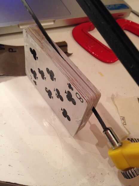 A continuación coger un cuchillo de sierra para metales o exacto y corte la tapa 1/4 de paquete de tarjetas.