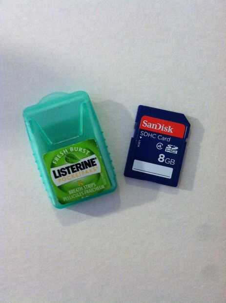 estos casos de tarjeta de memoria se basan en esta cosa de 4 voltios. He modificado el diseño para que se vea como una cámara en lugar de una cinta así que puedo mantener mis tarjetas SD seguro en mi bolsa de la cámara.Los paneles frontales y posteri