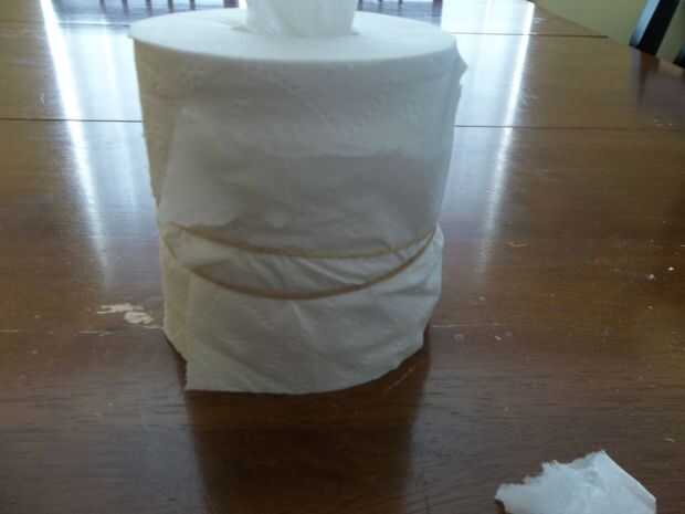 Para mantener el rollo de caer aparte y mantenga el extremo metido contra el rollo puse un par de bandas de goma en él bastante simple.
