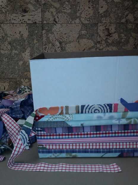 Seguir añadiendo tela hasta llegar al borde superior de la caja.