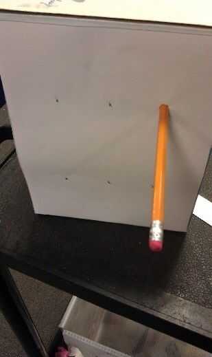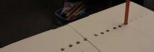 + A continuación se empuja un lápiz a través de las ranuras para crear agujeros redondos. (Por el momento había empujado el lápiz por los agujeros, la mayoría de la pintura había llegado fuera el lápiz.)