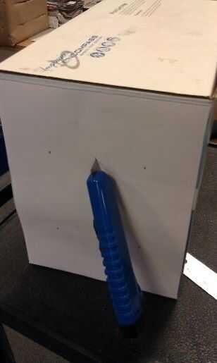 + Después usé cinta adhesiva doble cara para fijar el corte cuadros de texto, usé un cuchillo para hacer ranuras donde quería los agujeros.