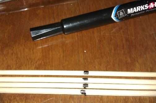 + I utiliza un marcador negro para marcar la espiga, luego sacó la clavija y había marcado el resto de las varillas con la misma marca de medida.