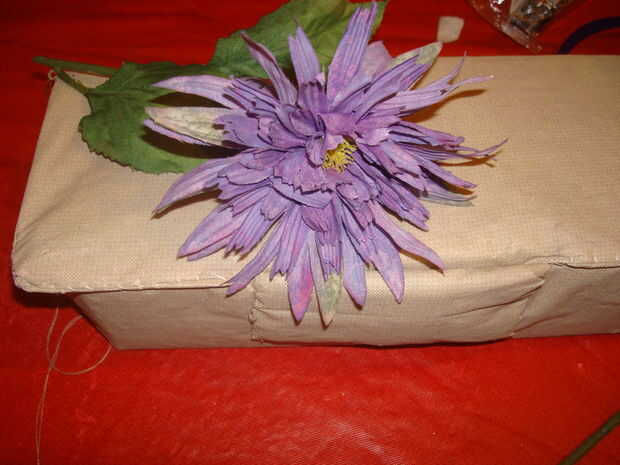 Luego embellecer el cuadro con la flor, botón y la cinta de pegar o coser.