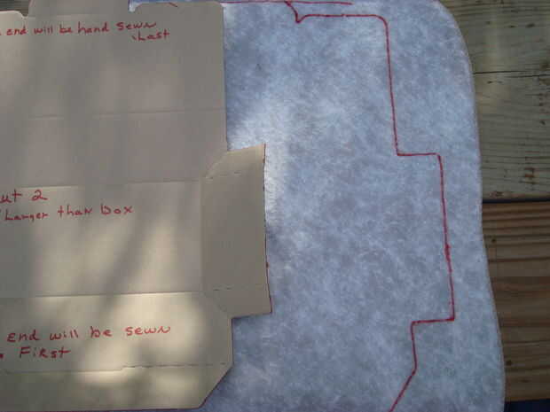 No he intentado hacer esto antes y después de éste; Voy a hacer un prototipo antes de usar a la tela de mi elección.  Coser el vinilo es un poco complicado.  Es decir por qué mano cosió este.  Hice 2 antes de éste para el patrón.  Las cajas que son los mejores tienen menos esquinas de forma extrañas.