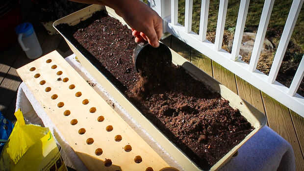 Cubrir las semillas con una fina semilla de comienzo de la mezcla. La firma suavemente el suelo antes de regar.
