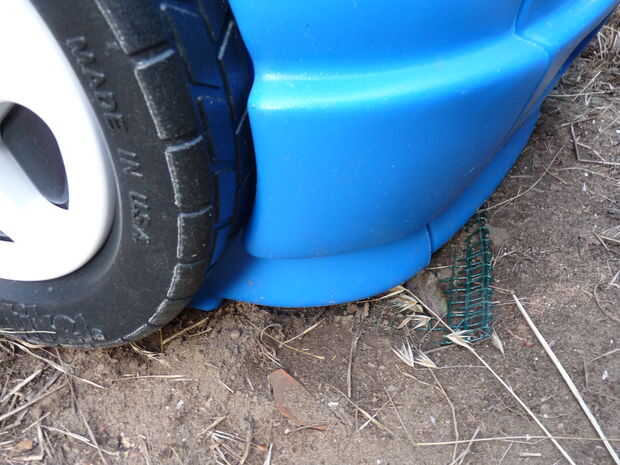 Medida de su cama, nivel del terreno por debajo, si es necesario y poner la malla groundcloth abajo donde va la cama. Utilice las estacas para groundcloth seguro.