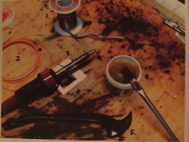 - FID (herramienta de plástico aproximadamente 7 pulgadas de largo que se utiliza para empujar/frotar el cobre de la hoja sobre el vidrio, al lado de una pluma de plástico puede también ser utilizado como un reemplazo)