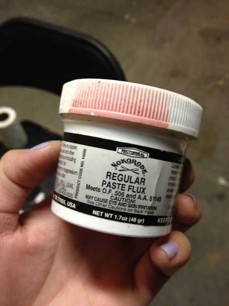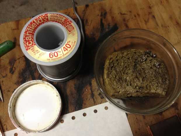 - Flujo y cepillo (esto permite la soldadura difundir más fácilmente a lo largo de la hoja de cobre)