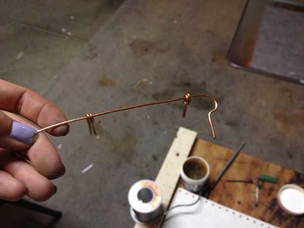 Si desea que los lazos y el alambre de soldadura de la capa, hacerlo ahora. Decidí hacer esto para un efecto estético. Si usted hace esto, asegúrese de que no aplique demasiada soldadura a los lazos o se cierran para arriba. Si esto sucede, simplemente levante el lazo por su base y mantener el soldador al centro tapado hasta que el exceso de soldadura gotea apagado o se redistribuye.