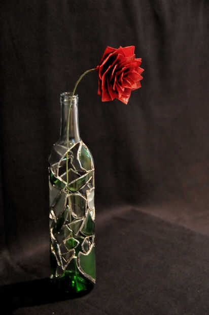 Estaba en una clase de arte del estudio de IB durante dos años. En esta clase, crear sus propios proyectos que giran en torno a un tema central o pregunta. Quedé fascinado por las conexiones y cómo los objetos se relacionan con su entorno, así como lo que define un objeto. Mirando esto, que quería hacer arte que reflejara la importancia de la conexión. Siempre he querido vidrieras y piensa que este proceso es todo acerca de la manera más pequeñas piezas se relacionan para formar una obra de arte más grande. Luego he creado una caja de vidrio de mosaico (Foto 5) de diferentes piezas de vidrio, espejo, algún cristal de playa que había encontrado. Usé lámina de cobre, estaño y un soldador para soldar entre sí todas las piezas.