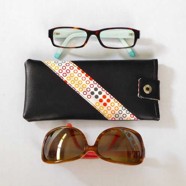 Elegí cuero vegan para crear esta caja para su durabilidad y grueso. Este tejido protege gafas y gafas de sol bien. Cuero Vegan es realmente sólo un nombre de fantasia para cuero piel artificial o falso pero suena tan bonito y moderno no quiero llamarlo otra cosa! Veganas cuero tiene un look similar, la textura y la sensación de cuero animal, pero no requiere dañar a los animales, que es fantástico!!!! Es muy fácil de trabajar con cualquier máquina arte proyecto.