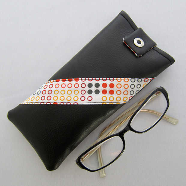 Ahora se cuentan ambos lados de la caja. Derecho contra uno a coser todas las partes excepto el lado con la ficha. Sugiero la apertura para la fuerza agregada costura doble. Cortar las esquinas (como con la ficha) y vuelva. Tienda gafas o gafas de sol en el caso o dar como un fabuloso regalo hecho a mano que cualquiera puede usar!