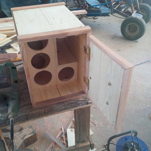 Agregar una puerta algunas bisagras una manija de puerta y cerraduras.