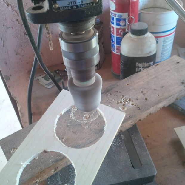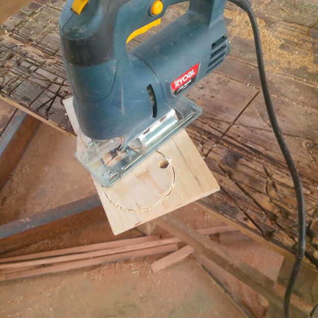 Marcar los círculos y perfore un agujero para la sierra caladora empezar.