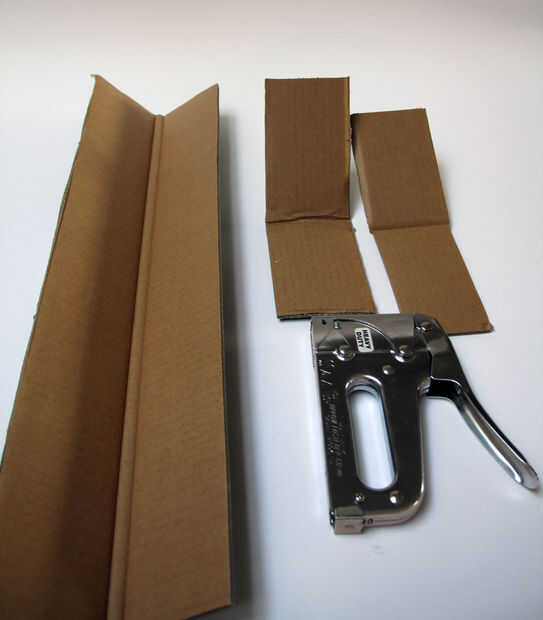 - Forma máxima durabilidad he añadido algún apoyo a las esquinas con piezas adicionales de cartón. Ver las últimas dos imágenes de abajo. Se adhirieron los soportes usando una pistola de pegamento, luego había reforzado con una pistola de grapas.