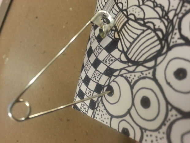 1. Haga agujeros en la caja, siguiendo sus diseños. Asegúrese de empujar los agujeros en ambos espesores de la caja.